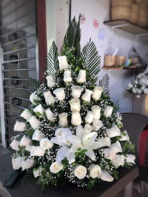Bouquet X24 Rosas y Flores blancas (Margaritas, pompones, chirozas), en Papel Coreano R176